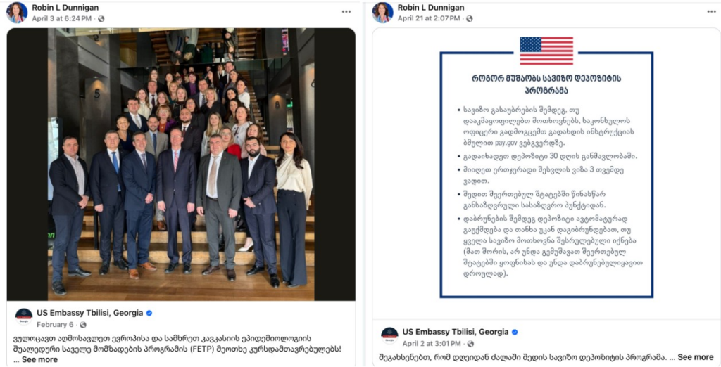 რობინ დანიგანის სახელით შექმნილი ანგარიში ძირითადად საქართველოში აშშ-ის საელჩოს ფეისბუქ-პოსტებს აზიარებს. შესაბამისად ეს კიდევ უფრო ამცირებს მის სანდოობას, მით უმეტეს, რომ დანიგანი არც მოქმედი ელჩობის პერიოდში გამოირჩეოდა სოციალურ მედიაში აქტიურობით. 2025 წლის 5 ივნისს მან თანამდებობა დატოვა და განაცხადა, რომ პირადი გადაწყვეტილებით პენსიაზე გადიოდა.